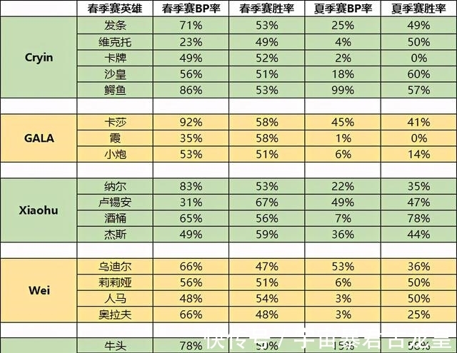 MSI后回归RNG,包括Clockwork、Ka'Sa、Gnar、Lucian、Udyr和Bull Head。他们在春季赛中表现出来的这些杰出英雄集体受苦。拳头弱化的时候,即使是一向强势的卡莎也未能将胜率保持在50%左右。